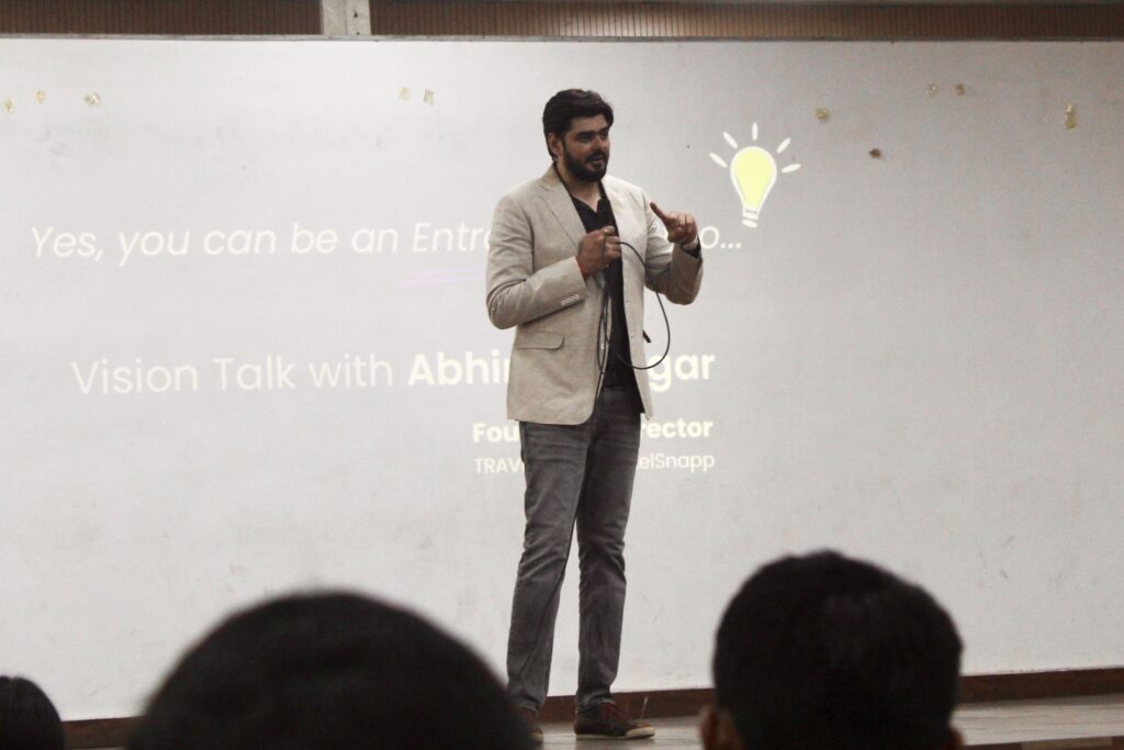 To make entrepreneurship relatable, Abhinav shared his journey of founding HotelSnapp — a platform built to simplify hotel booking and offer customers better rates than traditional OTAs.